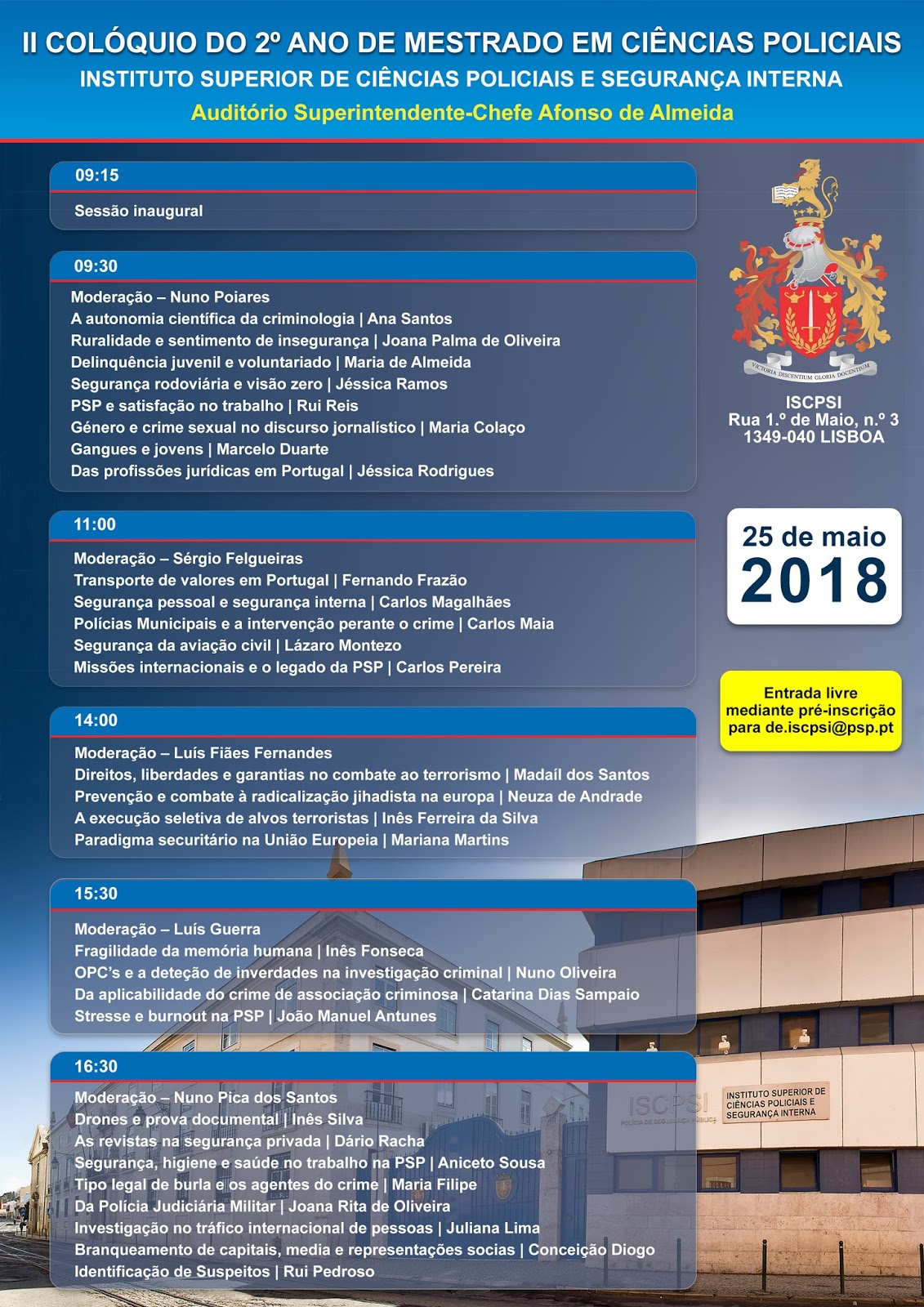 O VII CDEP é ministrado no Instituto Superior de Ciências Policiais e Segurança Interna (Lisboa) e a sessão de abertura vai contar com a presença de ilustres palestrantes: Nuno Severiano Teixeira, Constança Urbano de Sousa, Luís Tomé e Roberto Fernandes.
